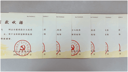 會議第五項,支委會將疫情期間公司19位黨員以“特殊黨費”形式捐款12600元的捐款收據(jù)發(fā)放到黨員手中,這不僅僅是黨員的愛心,而且還可以享受個人所得稅抵扣減免,支委會囑咐大家妥善保存。與會黨員表示,一定牢記初心和使命,在疫情防控常態(tài)化狀態(tài)下,充分發(fā)揮黨員的先鋒模范作用,一手抓防控,一手抓工作,為打贏疫情防控攻堅戰(zhàn)和經(jīng)濟保衛(wèi)戰(zhàn)做出應有的貢獻。