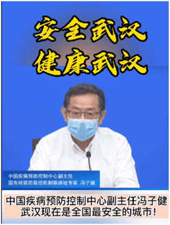 中國(guó)疾病預(yù)防控制中心副主任馮子健說(shuō):武漢現(xiàn)在是全國(guó)最安全的城市!